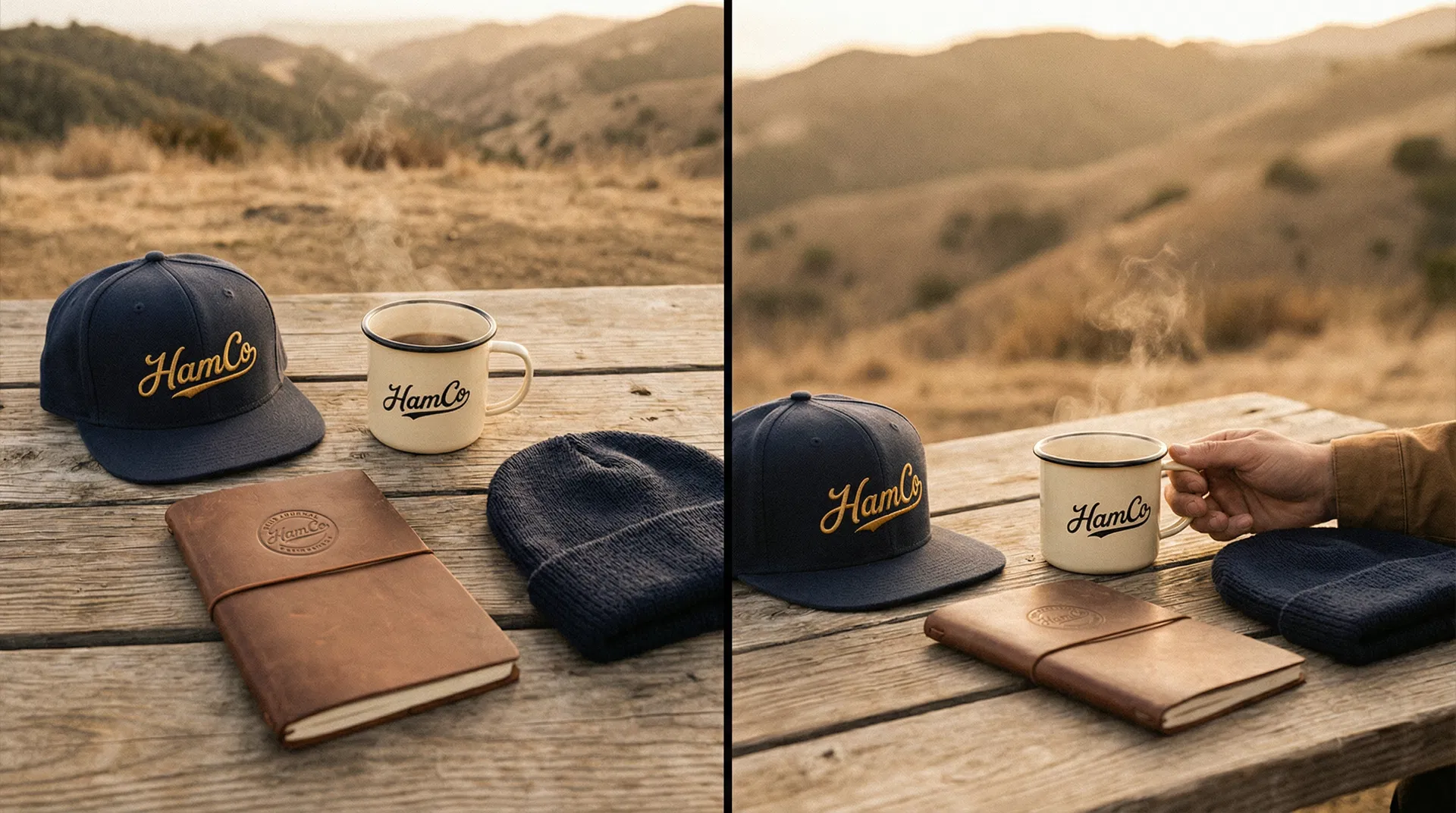 Trucker hats, leather field notes covers, campfire mugs, and more are being added to the rack. Every piece is built to the same HamCo standard — Ham Made, Built to Last.